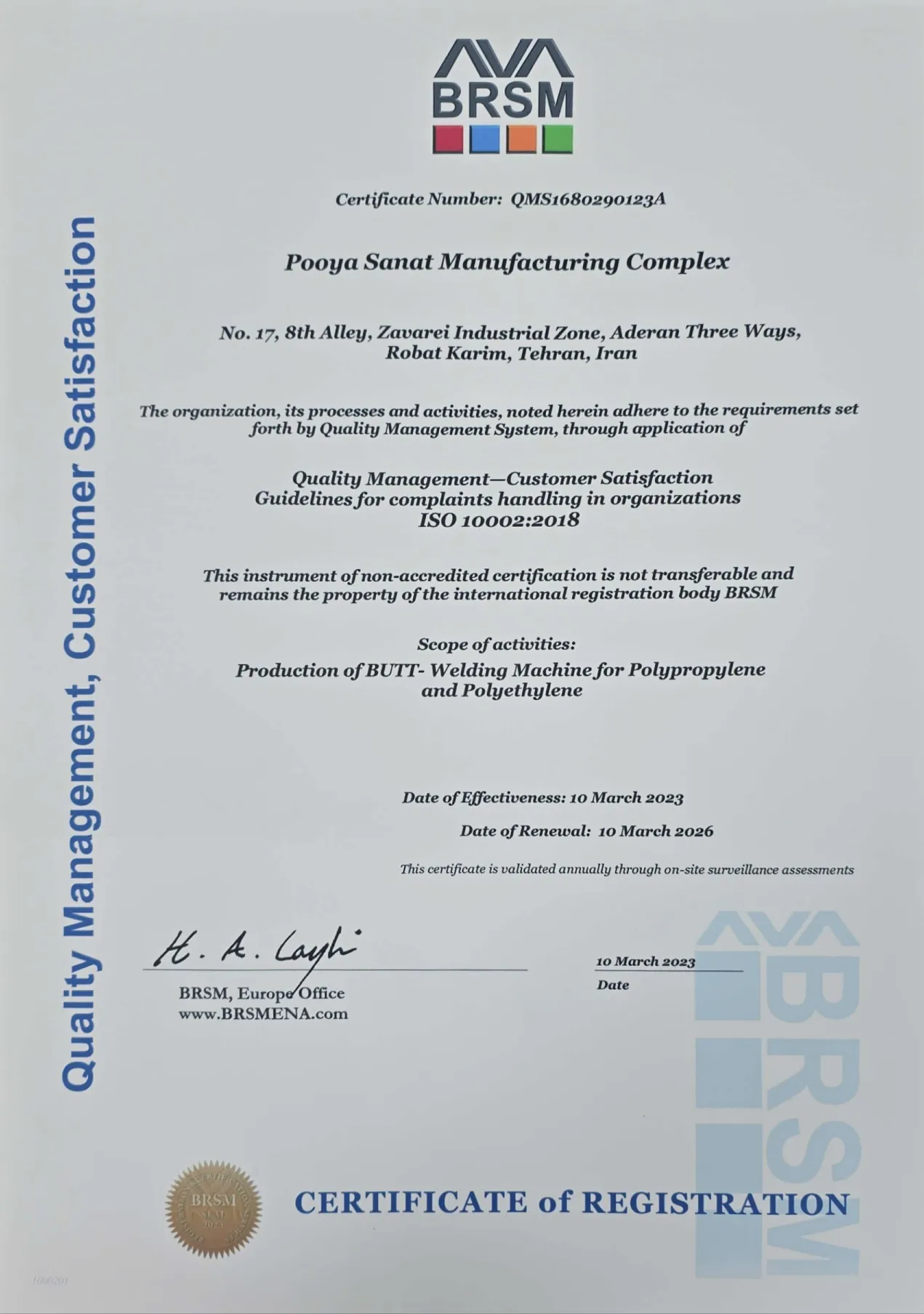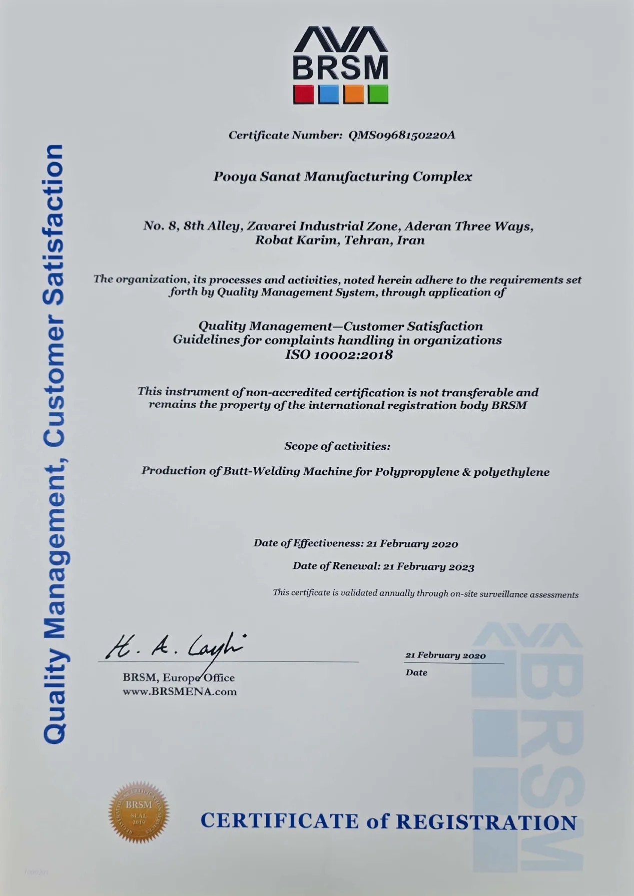 اشاره کرد که همگی گواهی بر تعهد بیچون و چرای ما به کیفیت و رضایت مشتری هستند.